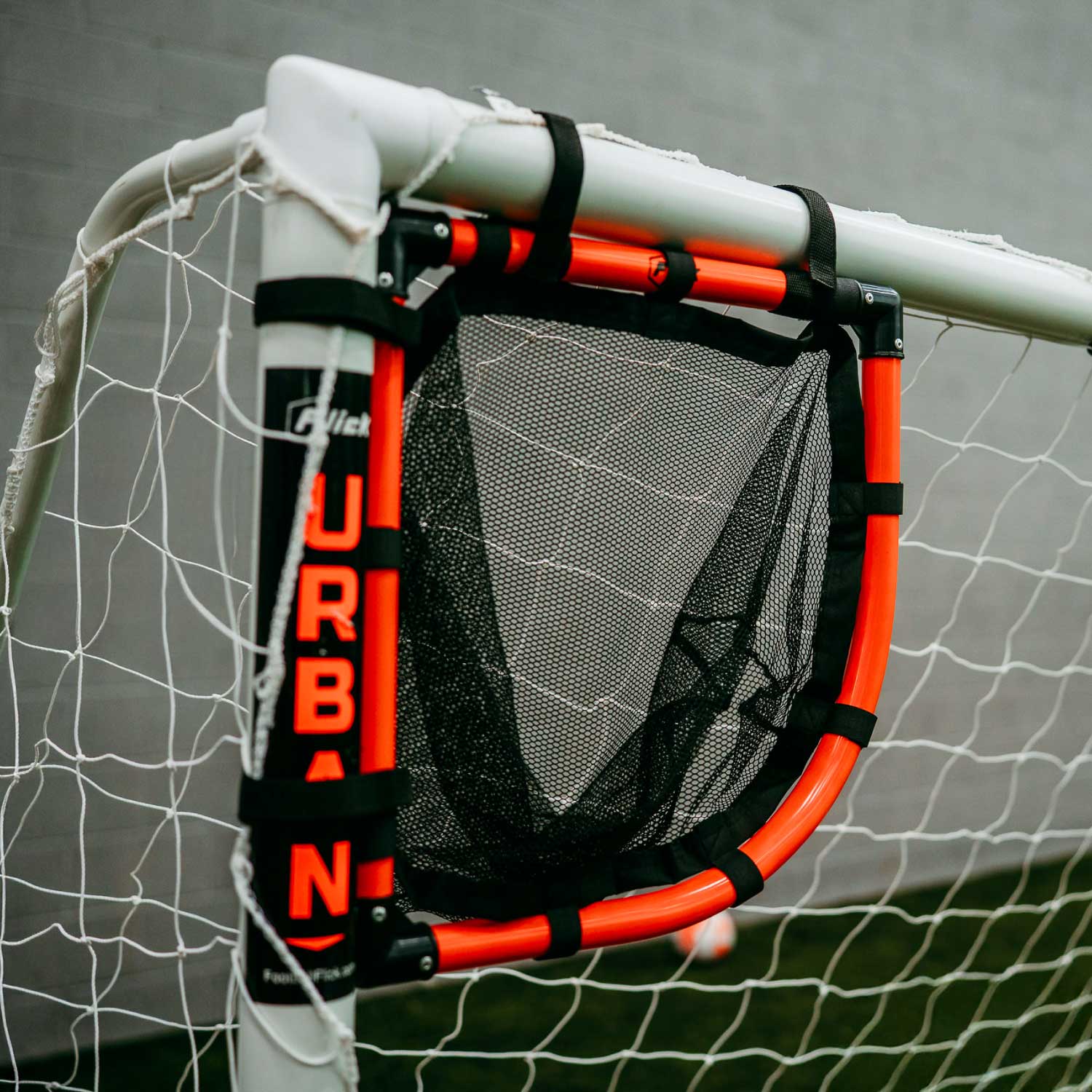 Die Football Flick Essentials Corner Shot Top Bins sind ein Premium-Fußballtrainingsprodukt für Spieler jeden Alters und jeder Spielstärke. Die Packung enthält 2 Fußballziele mit Aufsatzbehälter, Schnellbefestigungsgurte, Heringe und eine Tragetasche. Befestigen Sie die Zielscheiben an jeder Ecke Ihres Fußballnetzes – oben oder unten – und verbessern Sie Ihre Schuss-, Tritt- und Genauigkeitsfähigkeiten. Das einzigartige Design ist langlebiger als verbundene Alternativen und das hochwertige uPVC ist wetterfest und so konzipiert, dass es anhaltenden Stößen durch Fußbälle standhält. Die leuchtende Farbe der Fußball-Top-Bins-Ziele bedeutet, dass Sie sie bei jeder Sichtbarkeit verwenden können. Im Lieferumfang sind Schnellbefestigungsgurte enthalten, sodass Sie die Ziele innerhalb von Sekunden an jedem stabilen Fußballtorpfosten befestigen können. Nehmen Sie Ihre Trainingsausrüstung überall hin mit, indem Sie die Tragetasche verwenden, in der sich bequem die beiden oberen Fächer, Ziele, Gurte und Heringe befinden. Dies ist die ultimative Fußballtrainingsausrüstung für Kinder, Jugendliche, Teenager oder Erwachsene. Beginnen Sie mit dem Training wie ein Profi in Ihrem Garten, Fußballverein, Rasenplatz oder überall dort, wo es Fußballtore gibt.